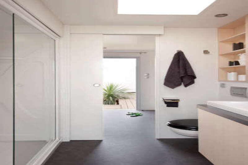Sanitaire : salle d’eau avec douche et lavabo, WC séparé.